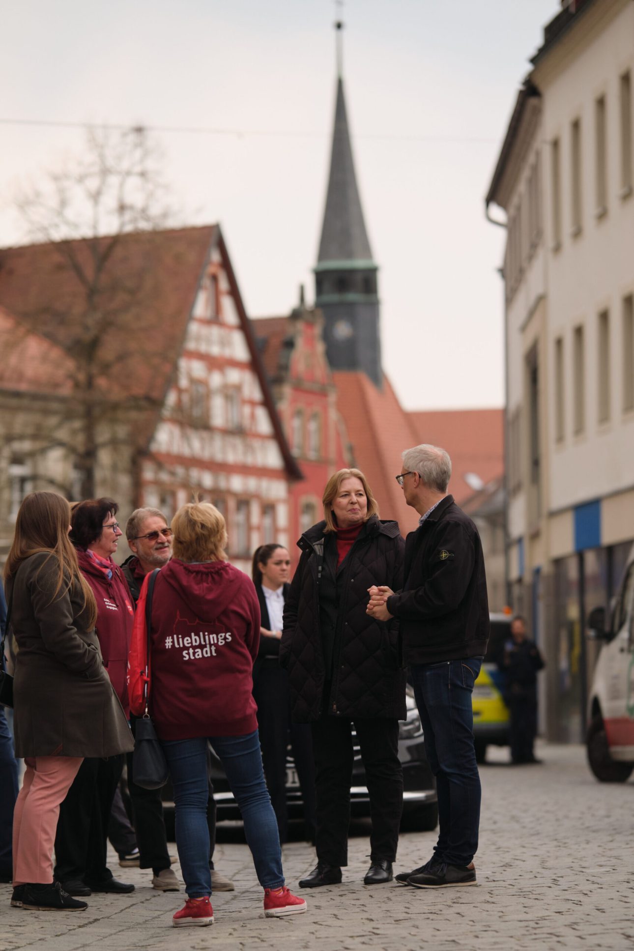 Forchheim – Am Samstag vor der Stichwahl um das Amt des Oberbürgermeisters war Bärbel Bas, Bundesministerin für Arbeit und Soziales, gemeinsam mit Ronja Endres, Landesvorsitzende der BayernSPD, in der Stadt zu Gast. Zusammen mit Oberbürgermeister Uwe Kirschstein ging es um konkrete Einblicke vor Ort und den Austausch zu zentralen politischen Fragen, insbesondere rund um Arbeit, kommunale Finanzen und das Zusammenspiel von Bund, Ländern und Gemeinden.